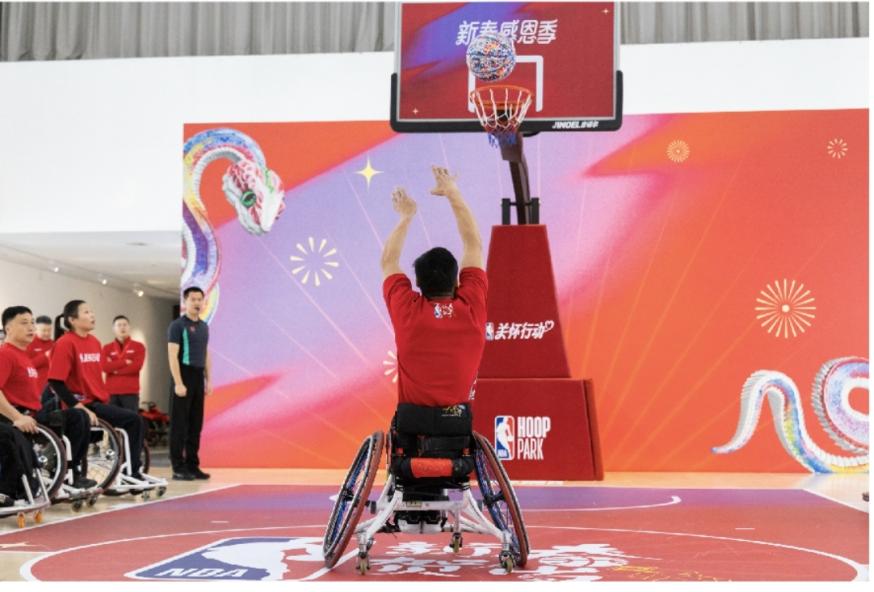 1月22日,来自北京轮椅篮球队的10名球员受邀参与NBA关怀行动新春感恩季的活动。NBA传奇球星肖恩·马里昂作为嘉宾与轮椅篮球队员们一起体验民俗活动,在传统文化体验与篮球激情的交织中,为现场球迷们带来了一场沉浸式迎春盛宴。